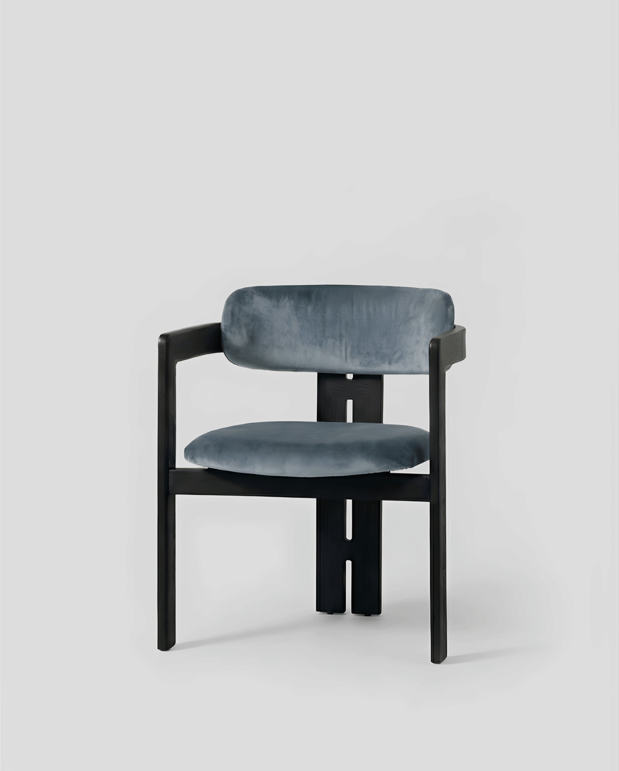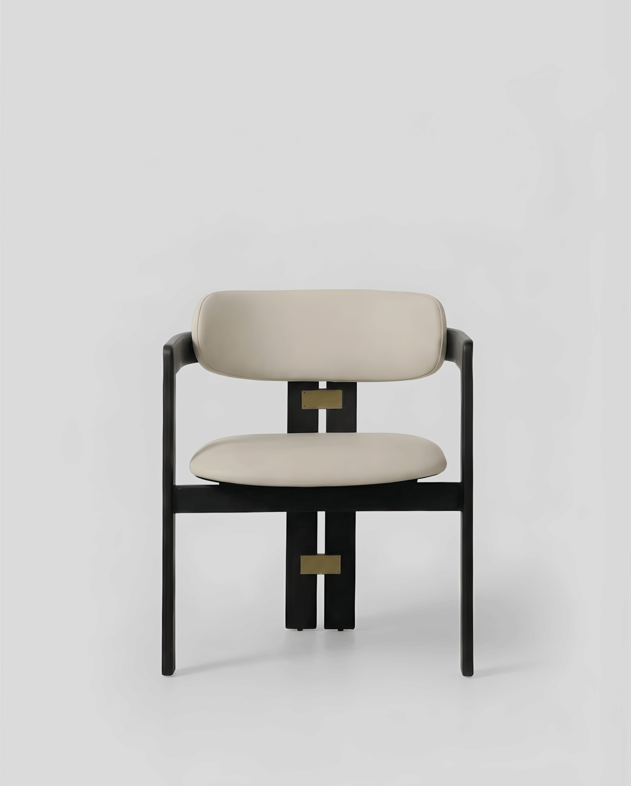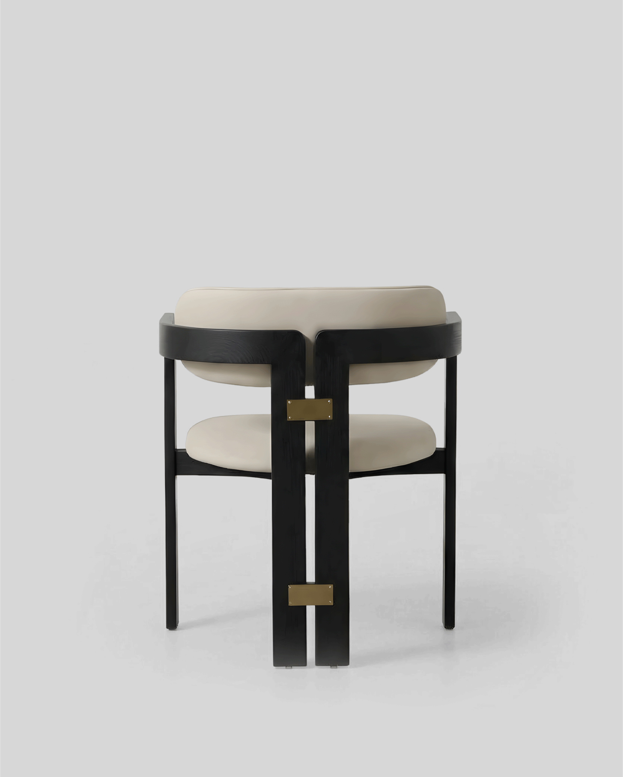 Elevate your space with the Otello Designer Chair, a masterpiece of modern elegance. Its sleek black ash wood frame is paired with sumptuous vegan leather, creating a striking contrast. A gold metal badge on the back adds a refined touch of sophistication, making it a standout piece. Perfect for enhancing your dining room with a designer flair.