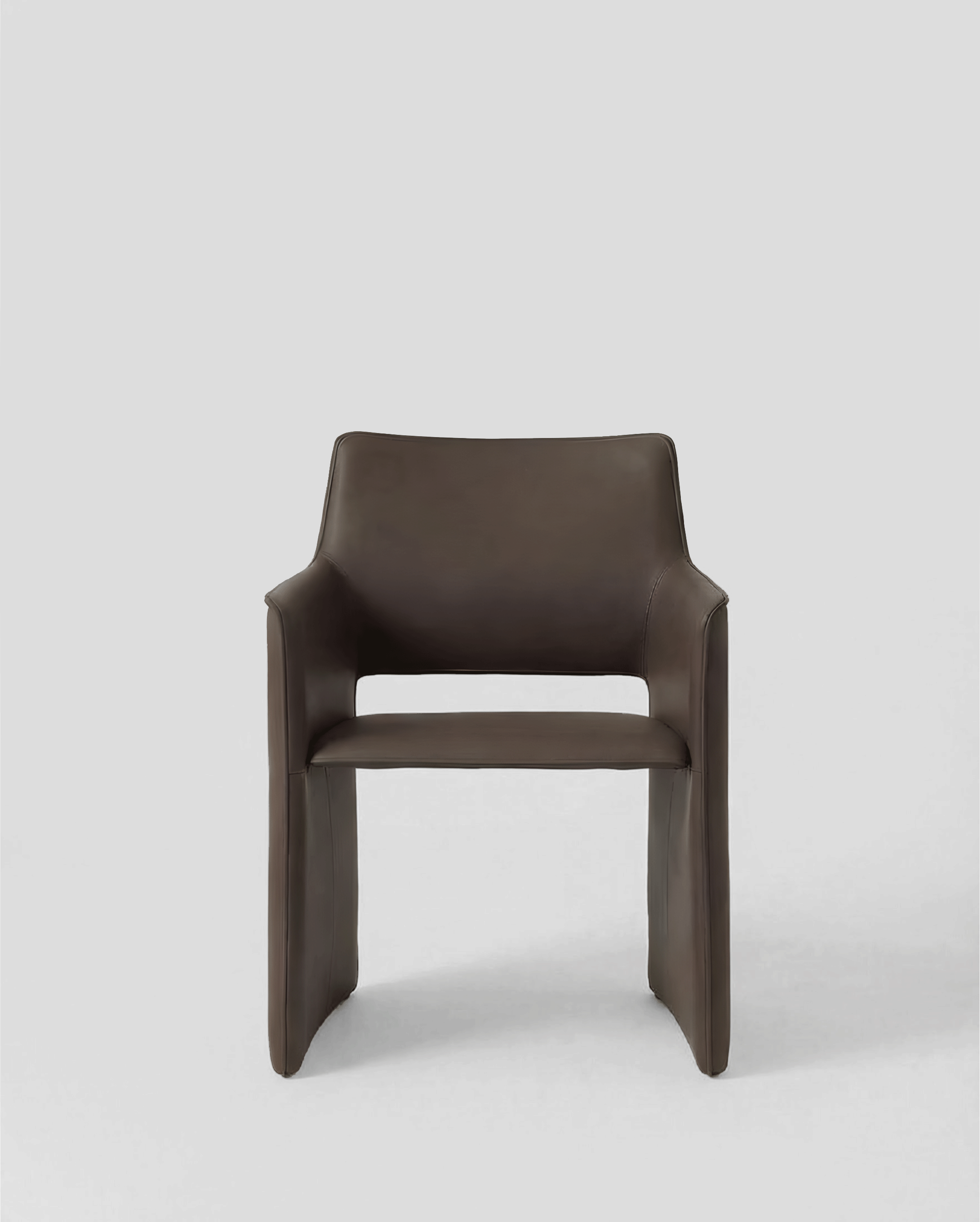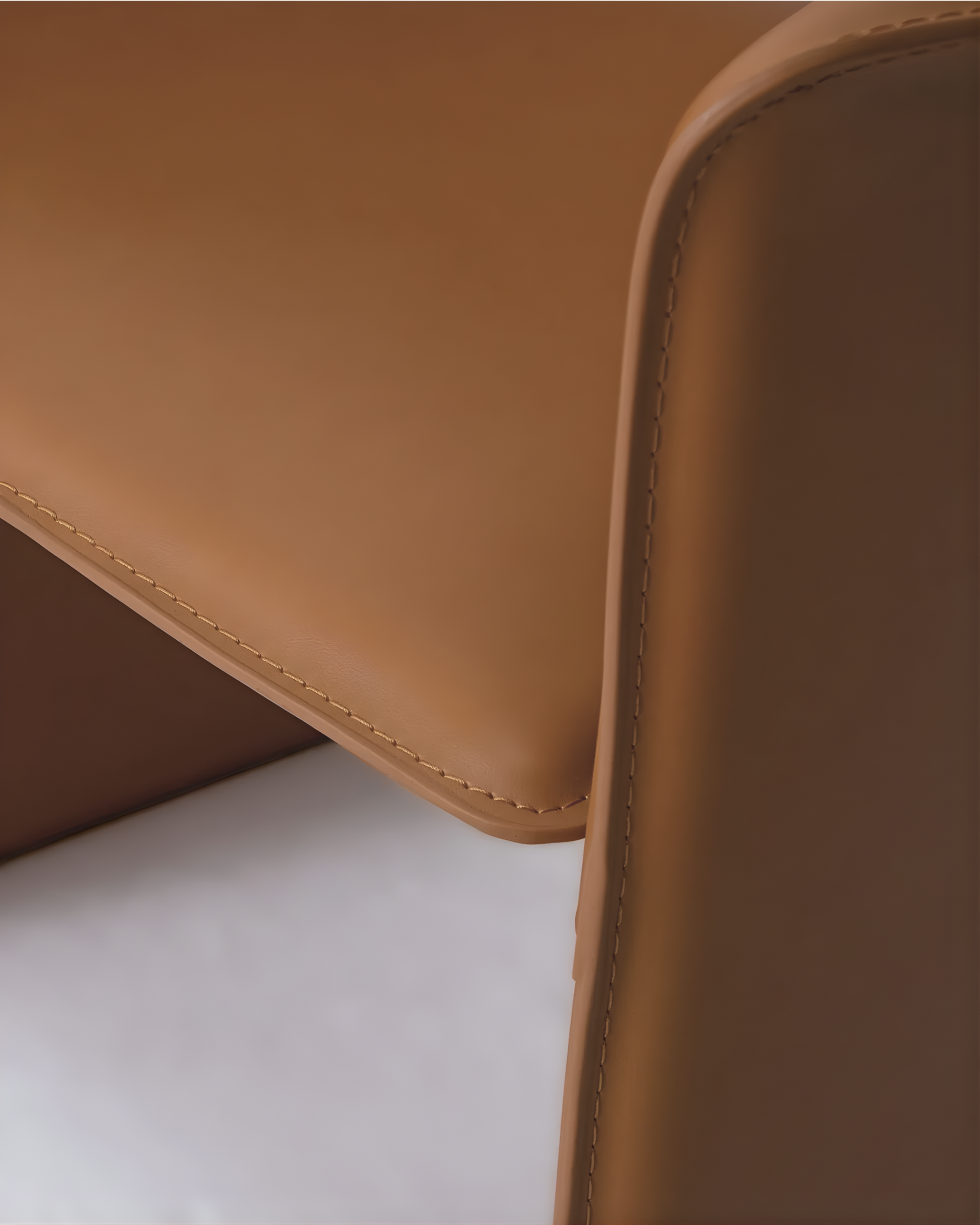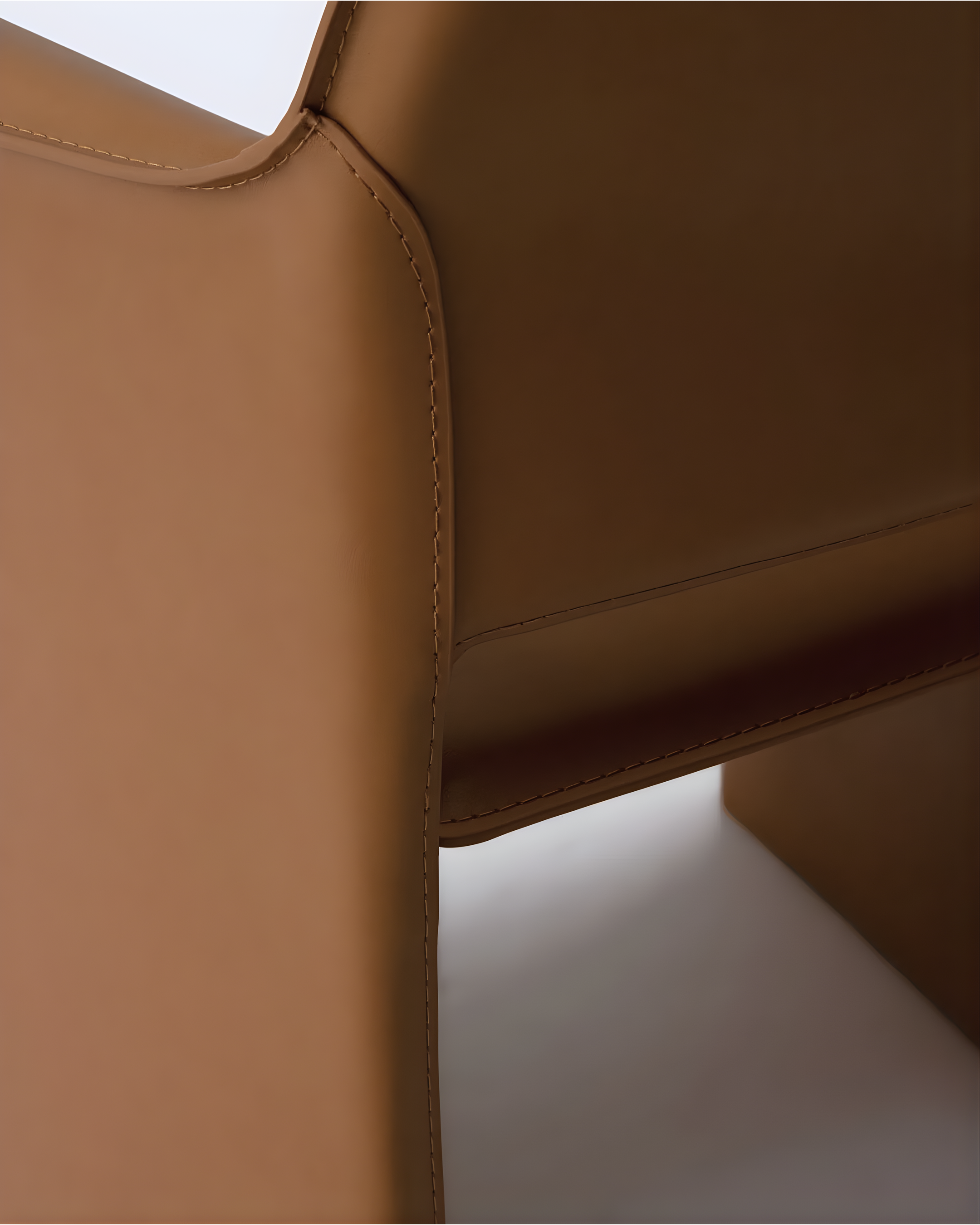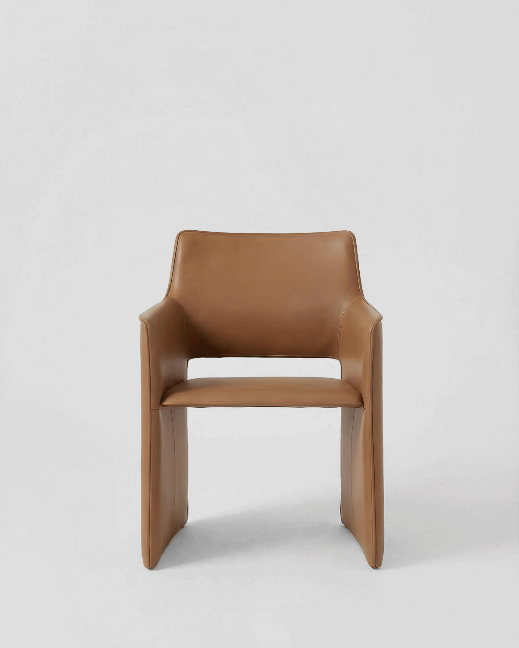 Introducing Santo, a luxurious dining chair that combines tailored lines and camel-coloured leather upholstery for a refined and sophisticated look. With its lithe form and sculptural lines, Santo elevates any space as a stunning accent piece. Its natural texture and versatile design make it a luxe element that seamlessly adapts to different aesthetics, adding a touch of elegance to your dining room or any other space.