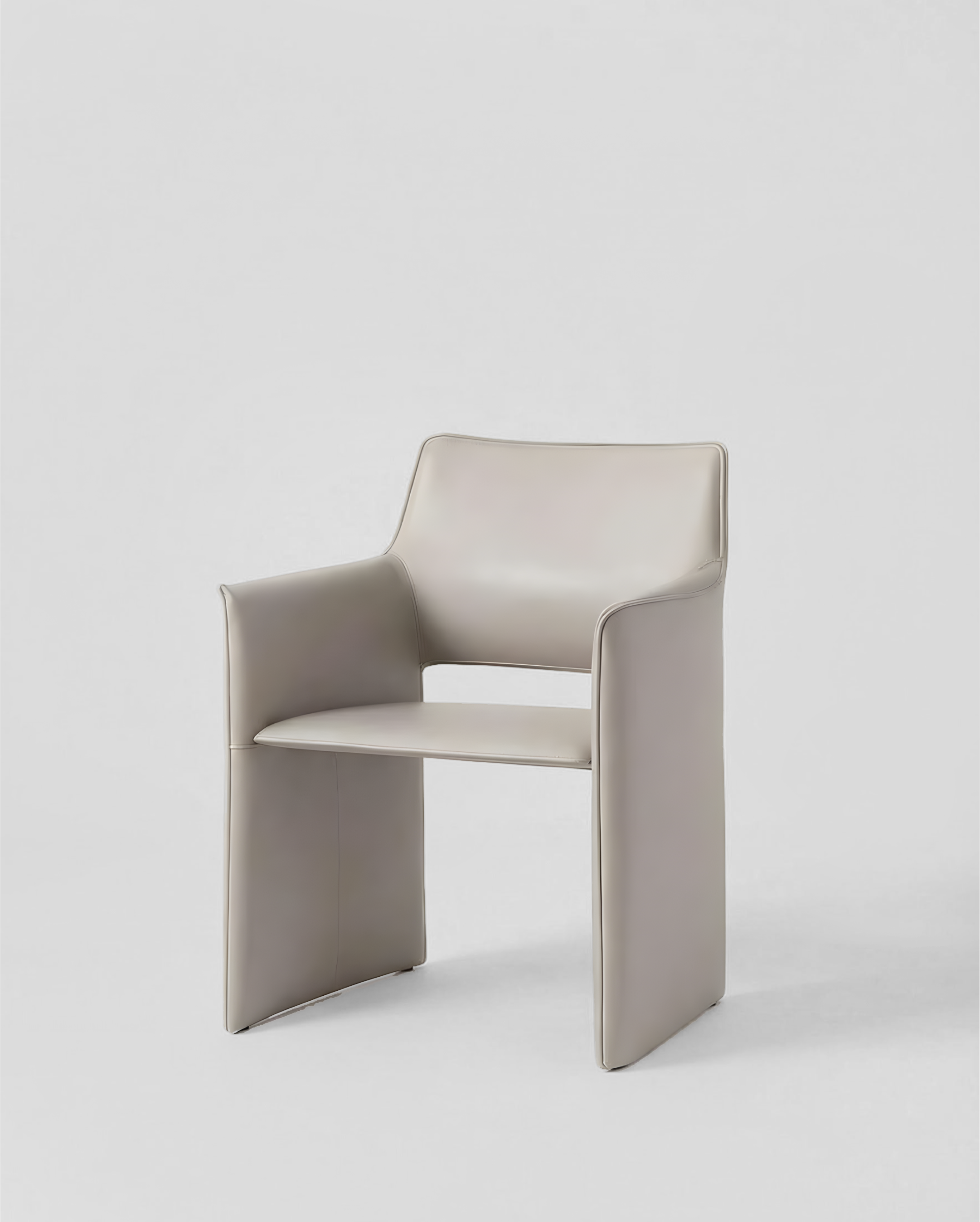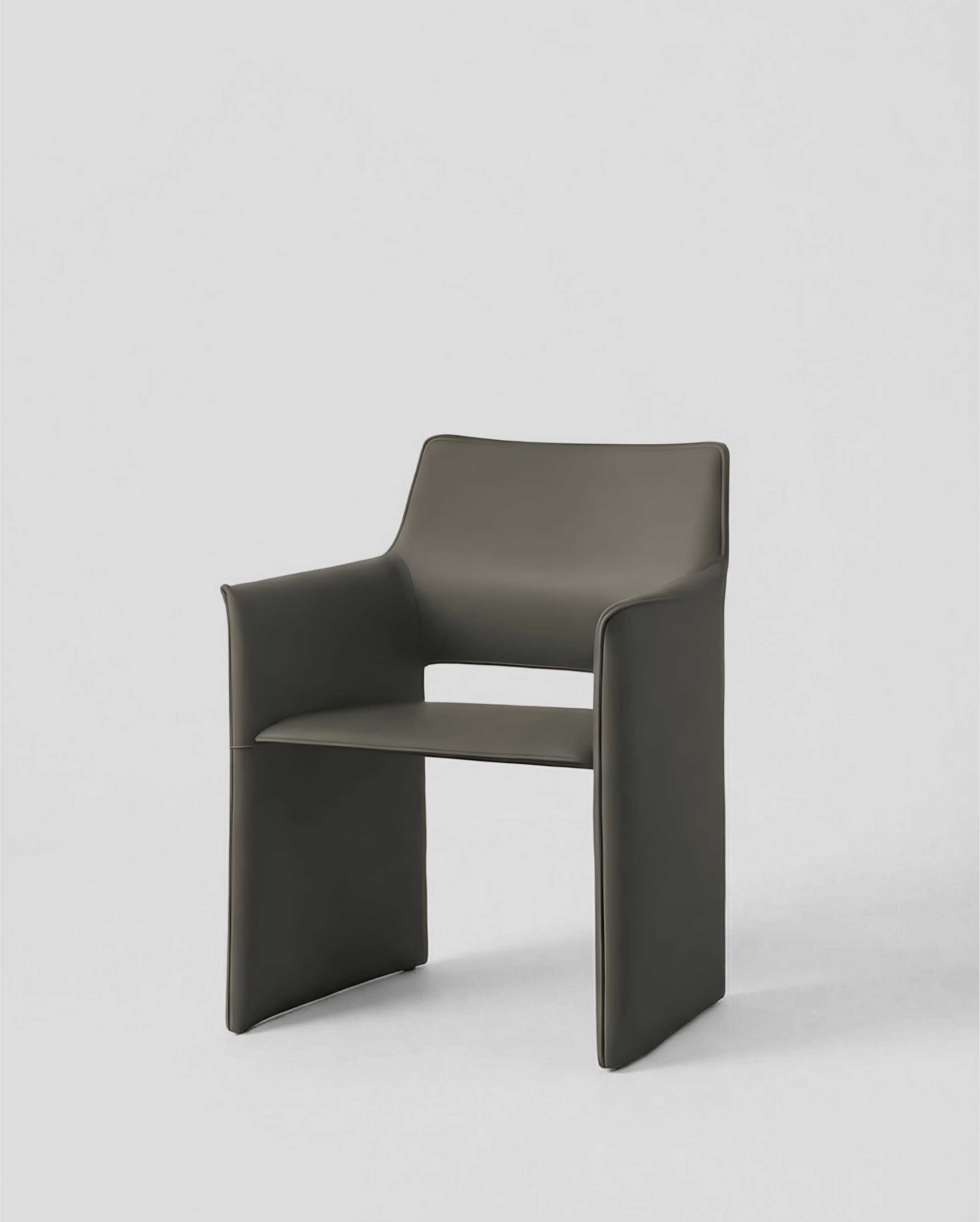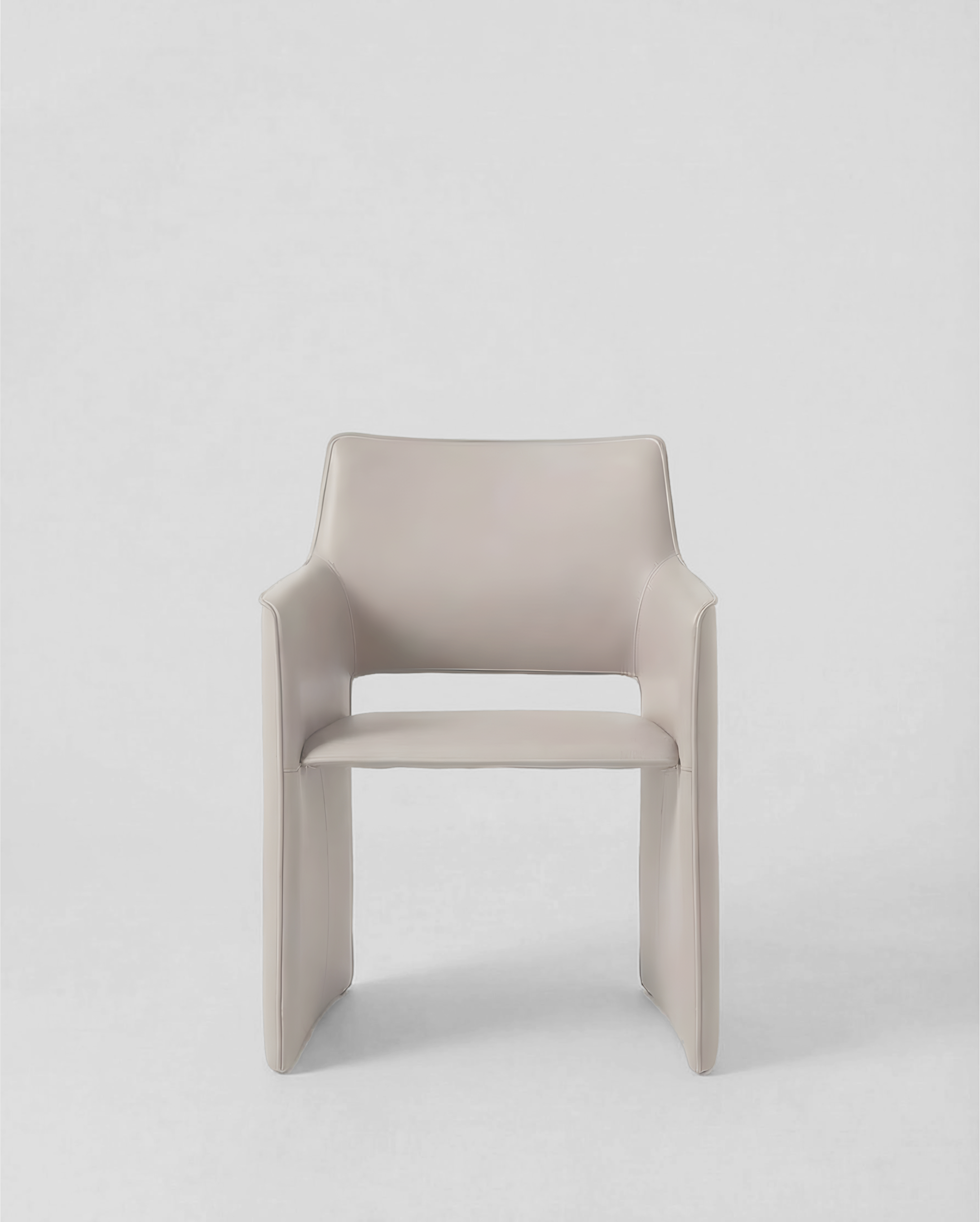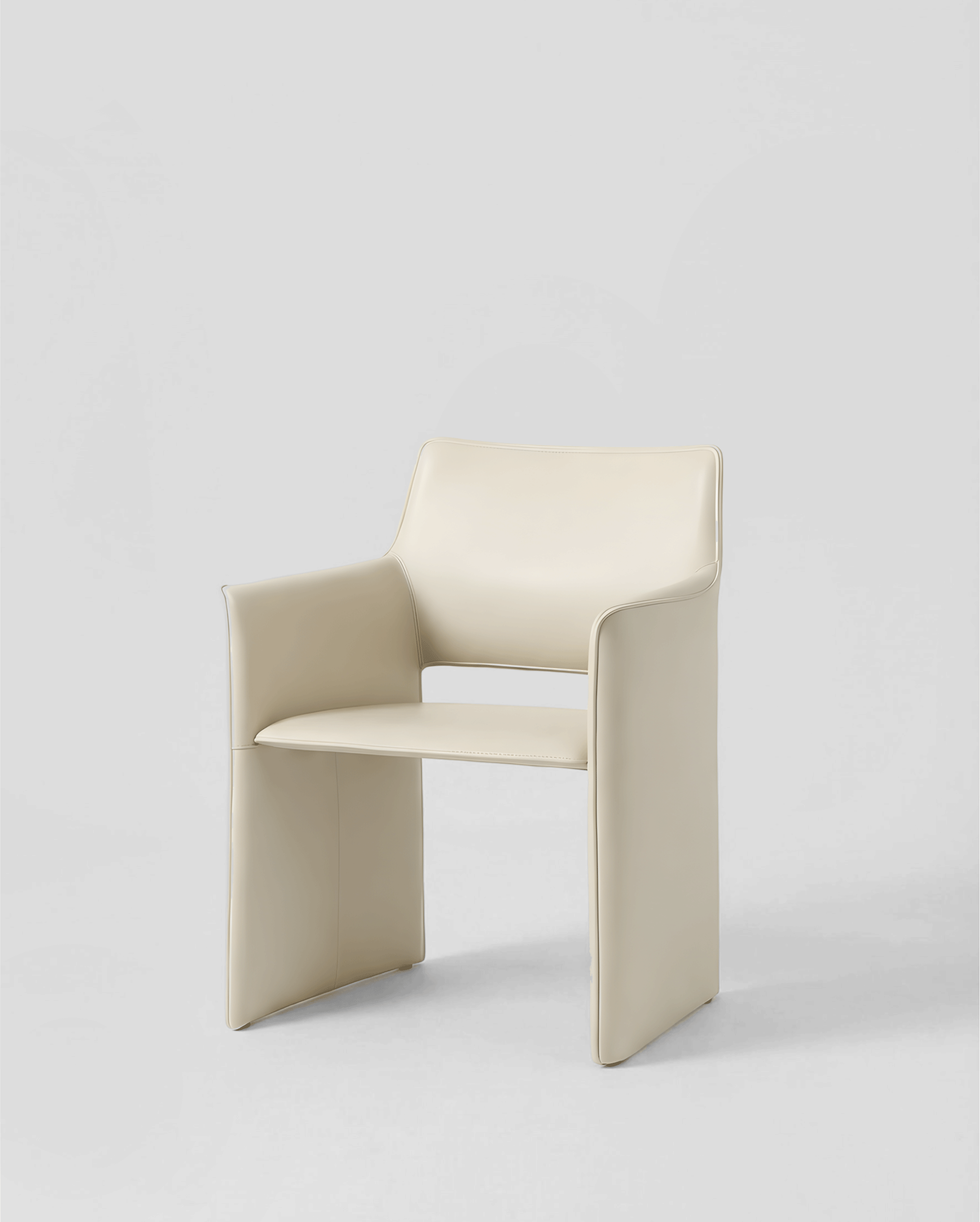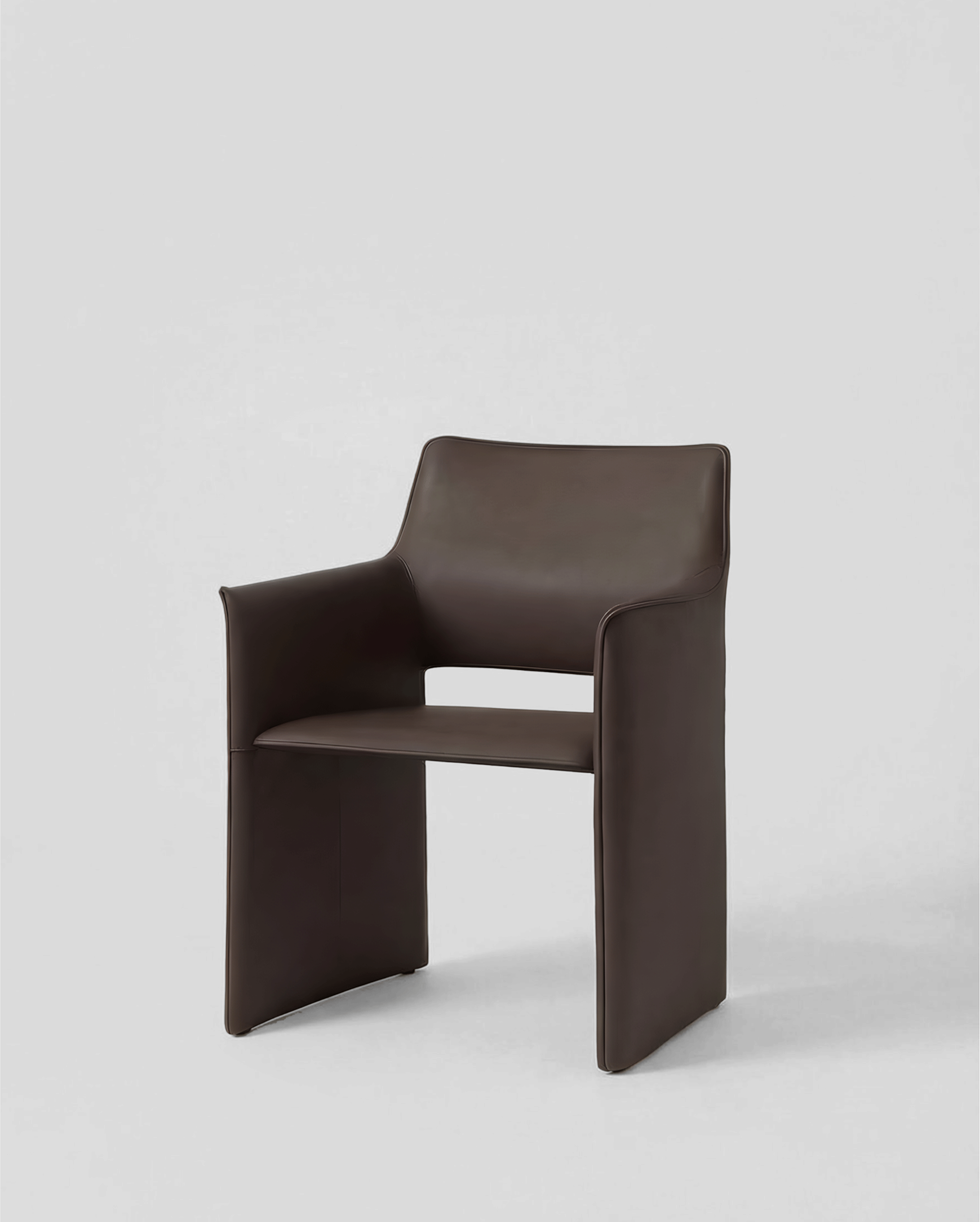 Introducing Santo, a luxurious dining chair that combines tailored lines and camel-coloured leather upholstery for a refined and sophisticated look. With its lithe form and sculptural lines, Santo elevates any space as a stunning accent piece. Its natural texture and versatile design make it a luxe element that seamlessly adapts to different aesthetics, adding a touch of elegance to your dining room or any other space.
