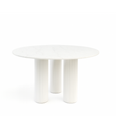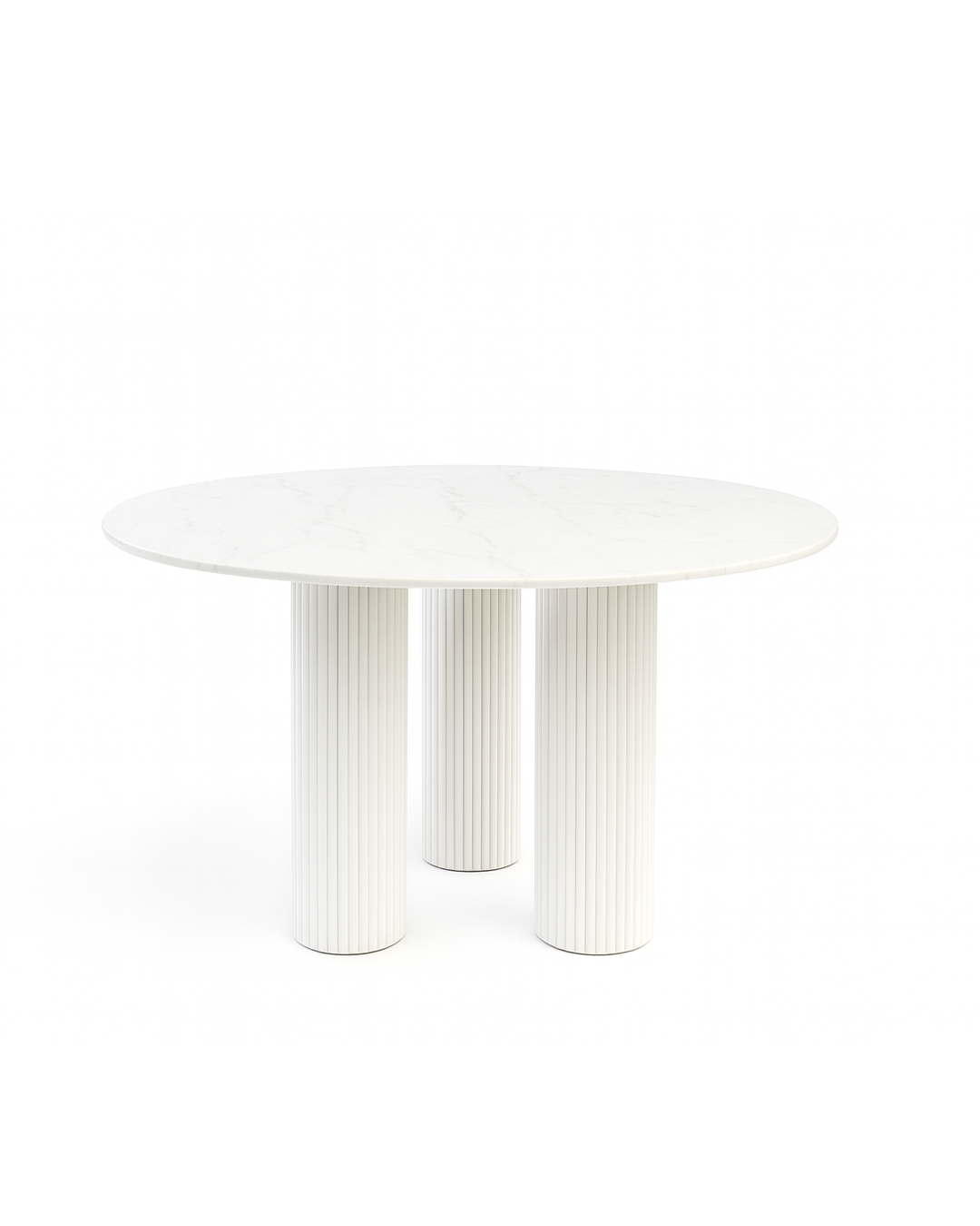 A sculptural three-legged design topped with luxurious Volakas White Marble, blending bold geometry with the organic elegance of natural gray veining. Stability meets artistry for modern interiors.