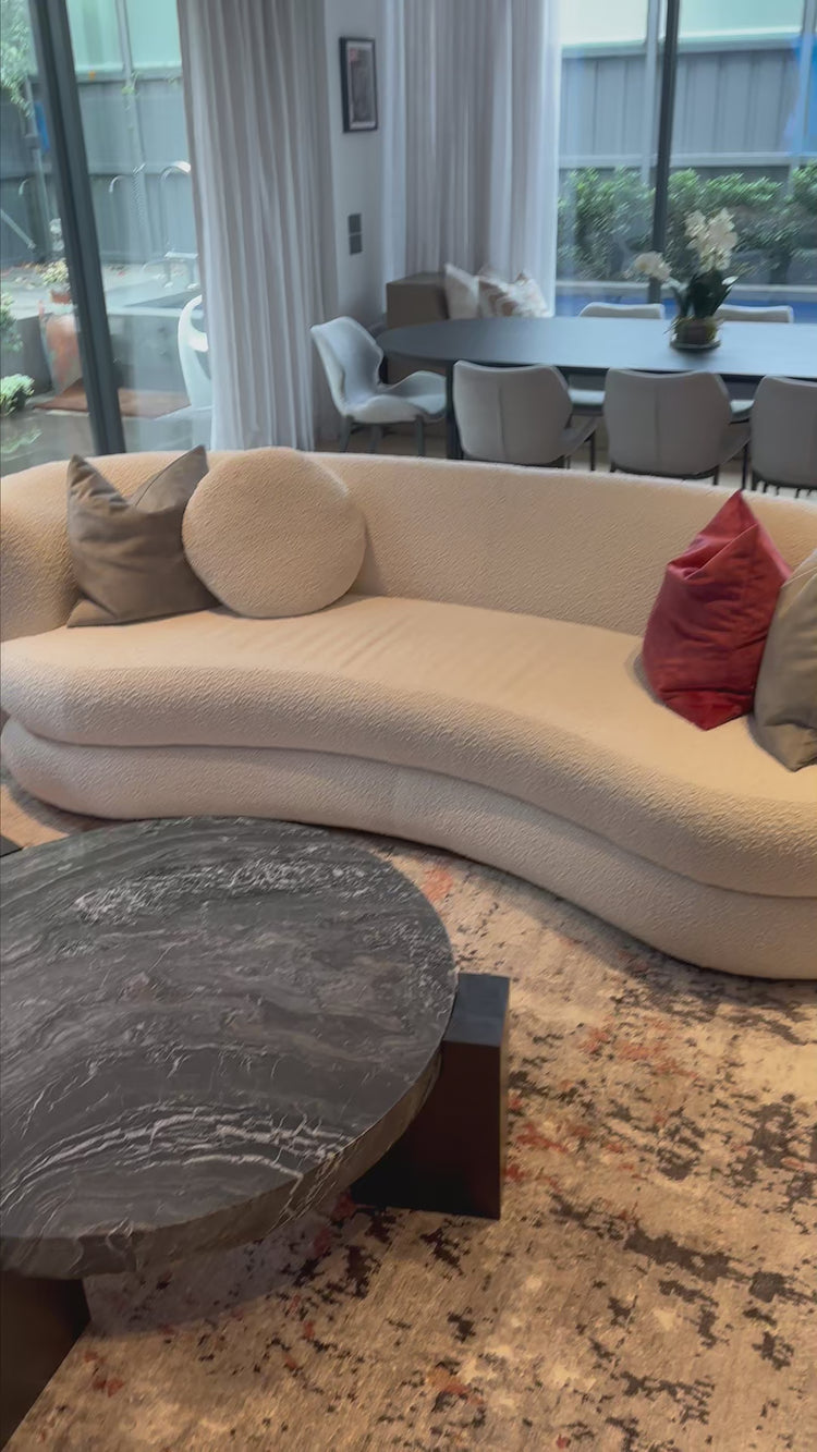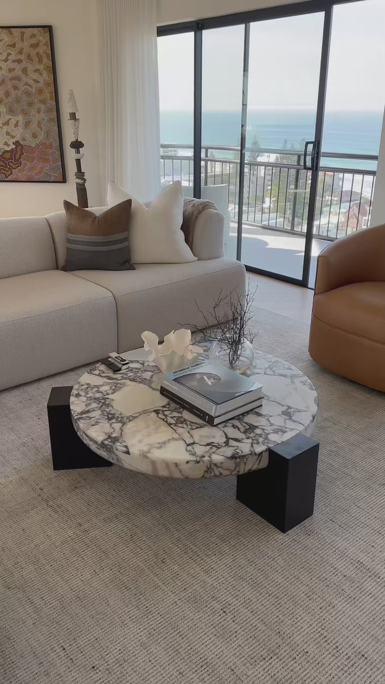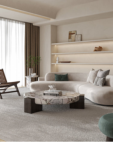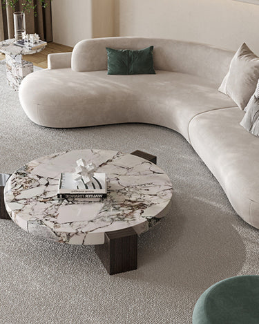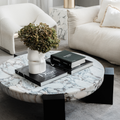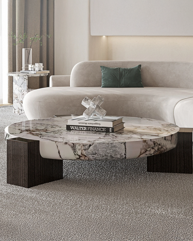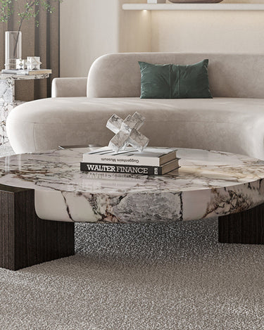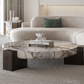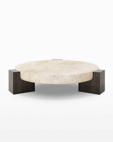 The Matteo Coffee Table merges natural stone with timeless design. Its thick curved natural stone top rests gracefully on three sturdy wooden legs, creating a sculptural centerpiece that balances strength, serenity, and artisanal craftsmanship.
