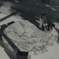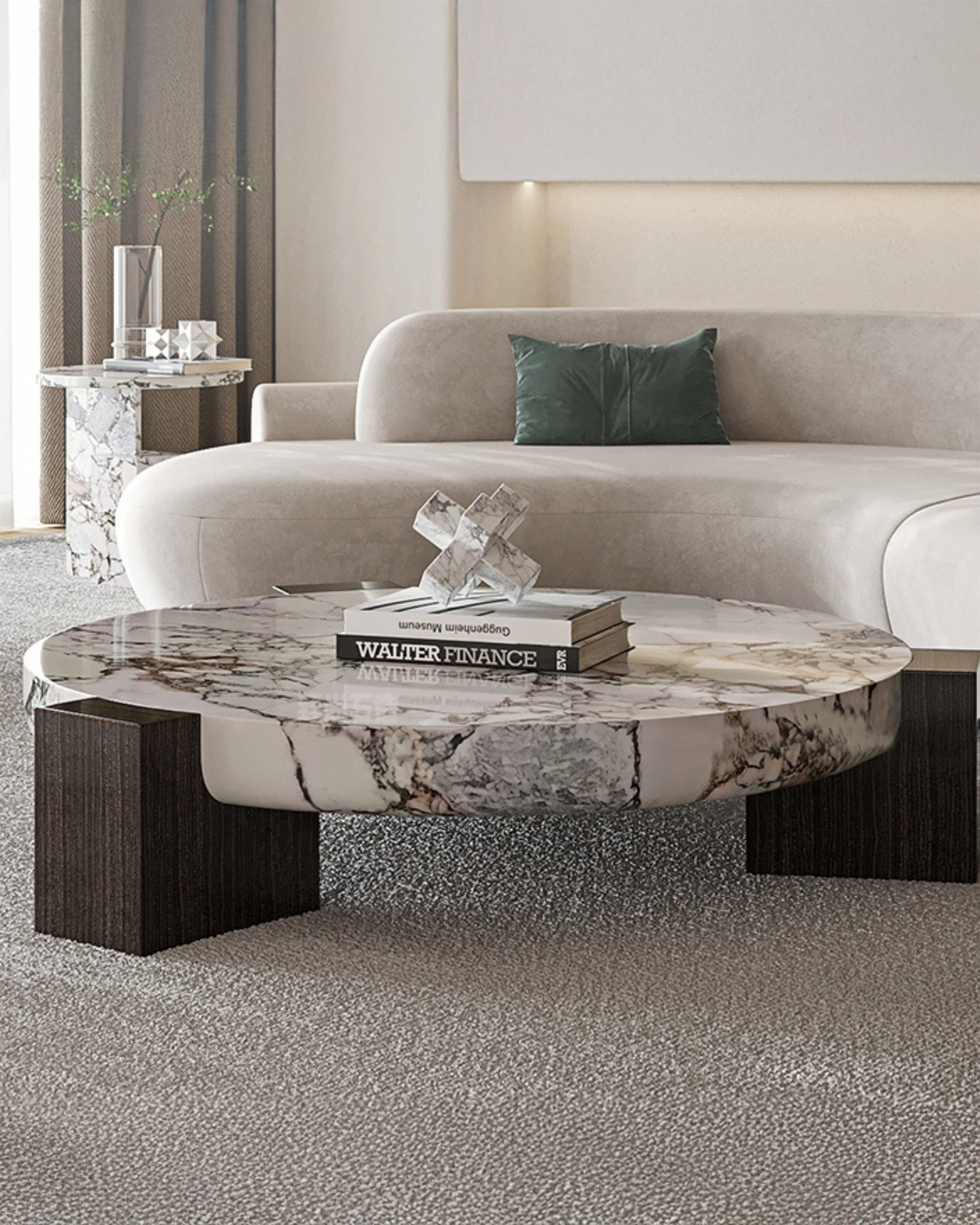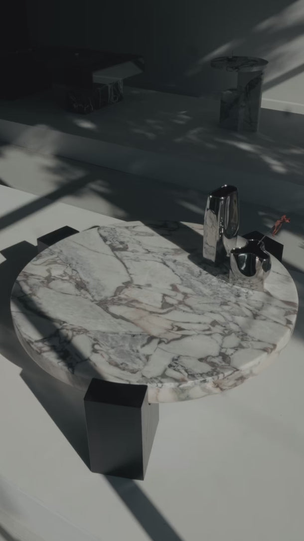 Our pieces are made from 100% natural solid stone slabs. Most of our tables have a wooden structure inside to hold the tables together.