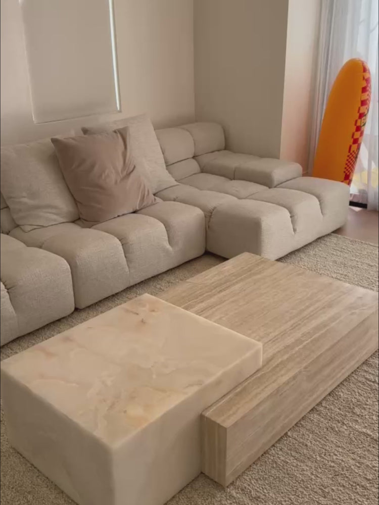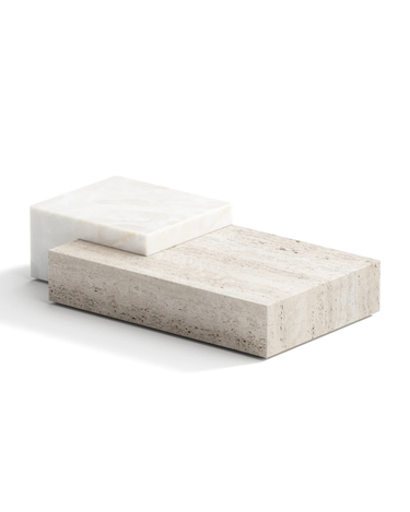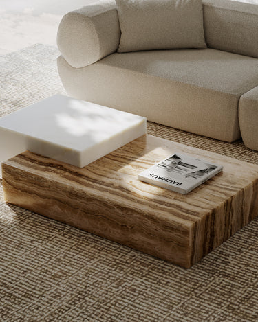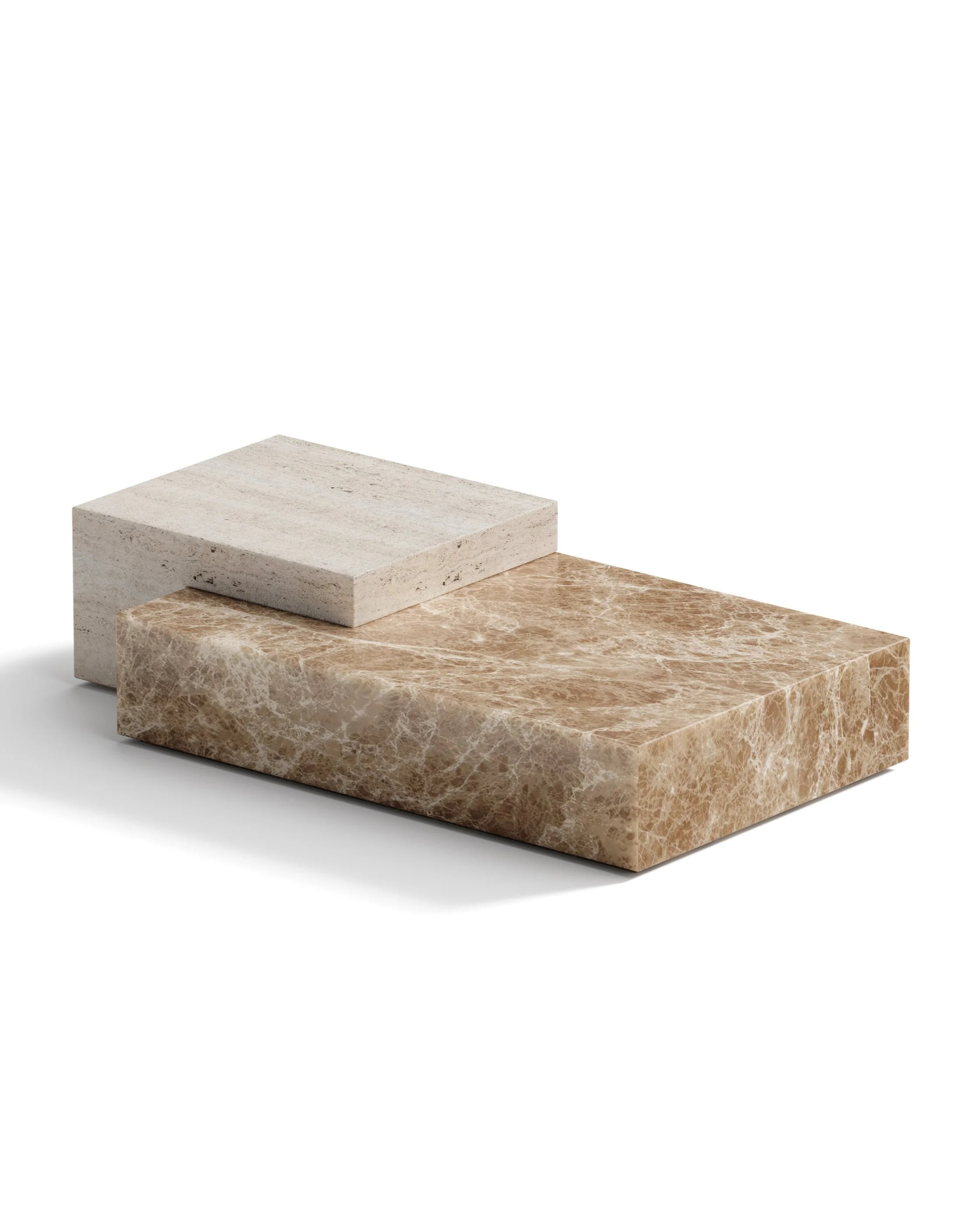 The MOCO Coffee Table explores dynamic proportions. With its bold rectangular design, the interplay of two plinths in natural stone evokes modern artistry and architectural harmony.