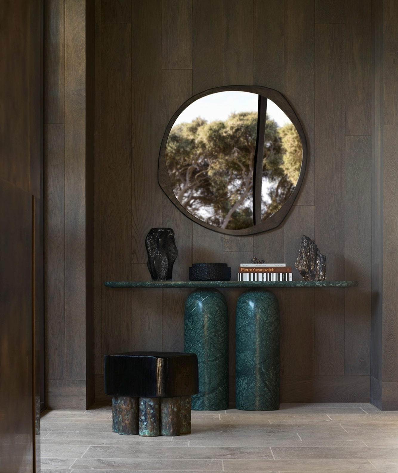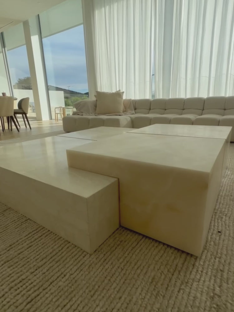 Our pieces are made from 100% natural solid stone slabs. Most of our tables have a wooden structure inside to hold the tables together.