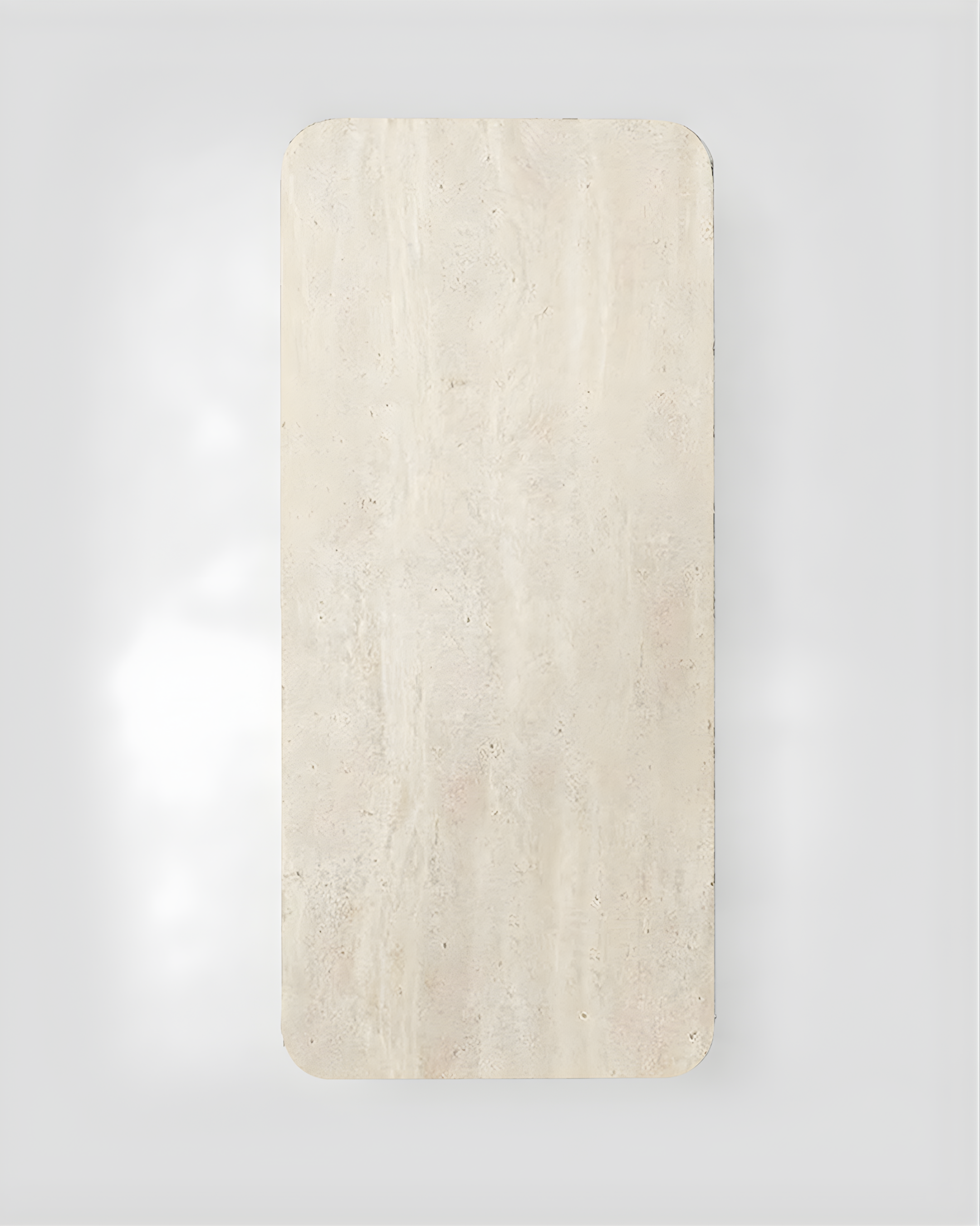 Authentic Travertine: To preserve the stone’s organic character, we leave smaller natural pits unfilled, maintaining its raw sensory profile. Larger apertures are refined only for functional stability.