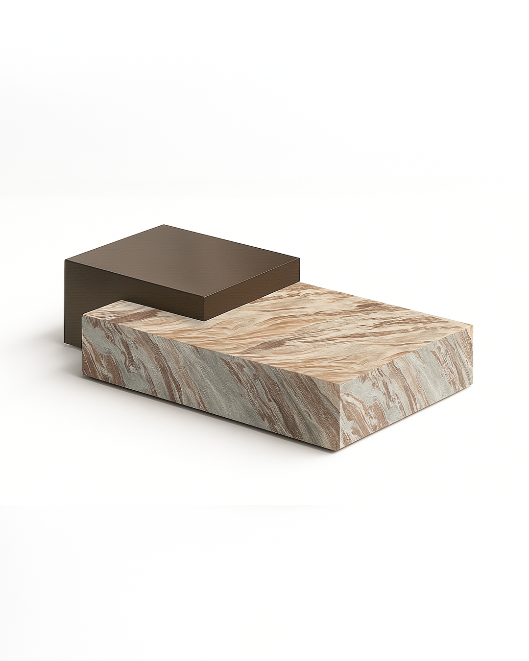 The MOCO Coffee Table explores dynamic proportions. With its bold rectangular design, the interplay of two plinths in natural stone evokes modern artistry and architectural harmony.