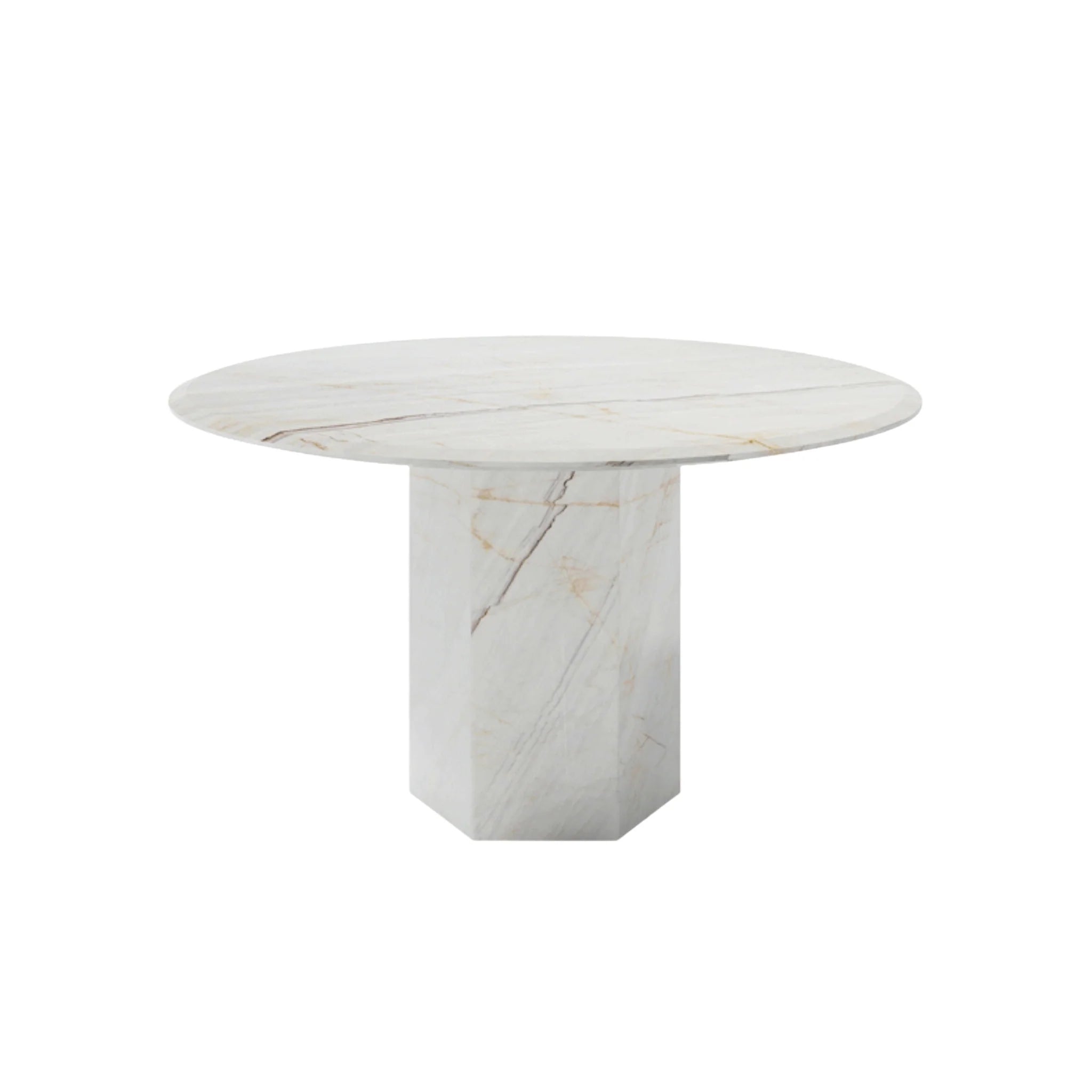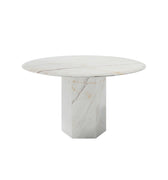 The Zante dining table showcases a refined round marble top, accentuated by a sleek, sharp nose edge finish. Its clean lines and modern silhouette embody understated elegance, making it a striking centerpiece that elevates both form and function.