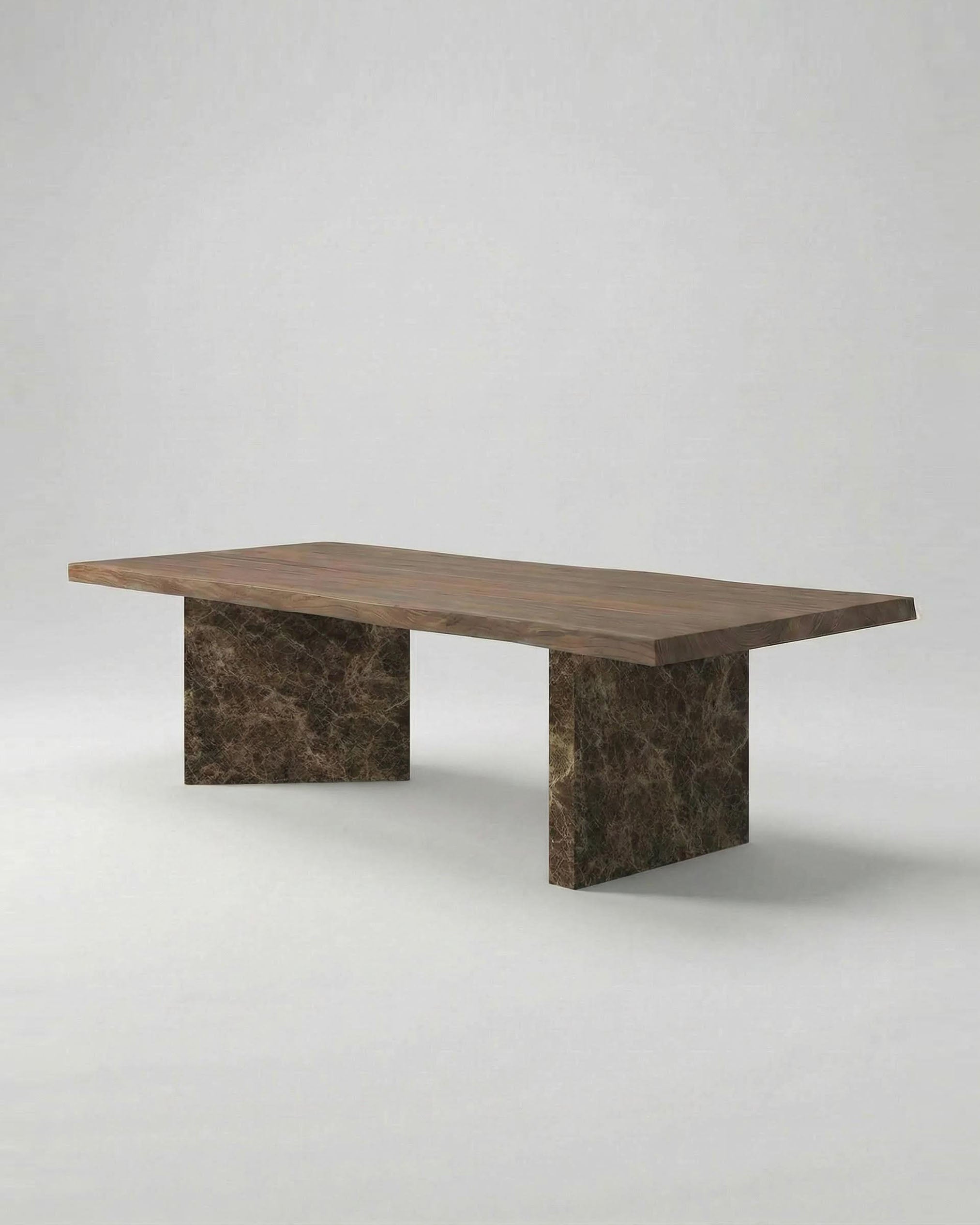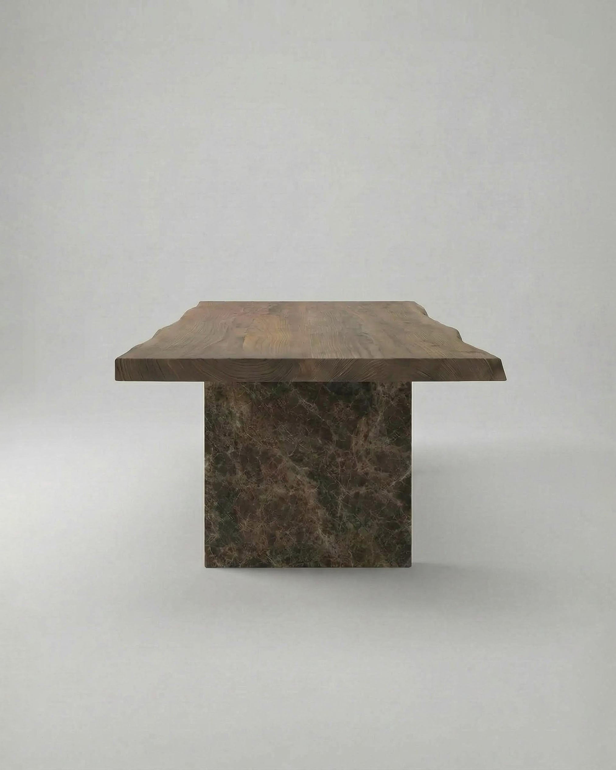 He means harmony — the coexistence of differences without conflict. One support stands straight, the other tilts gently, allowing contrast to remain in balance. Wood and stone meet without overpowering one another. Together, the form shows that harmony is not uniformity, but the ability for different elements to exist together with ease.